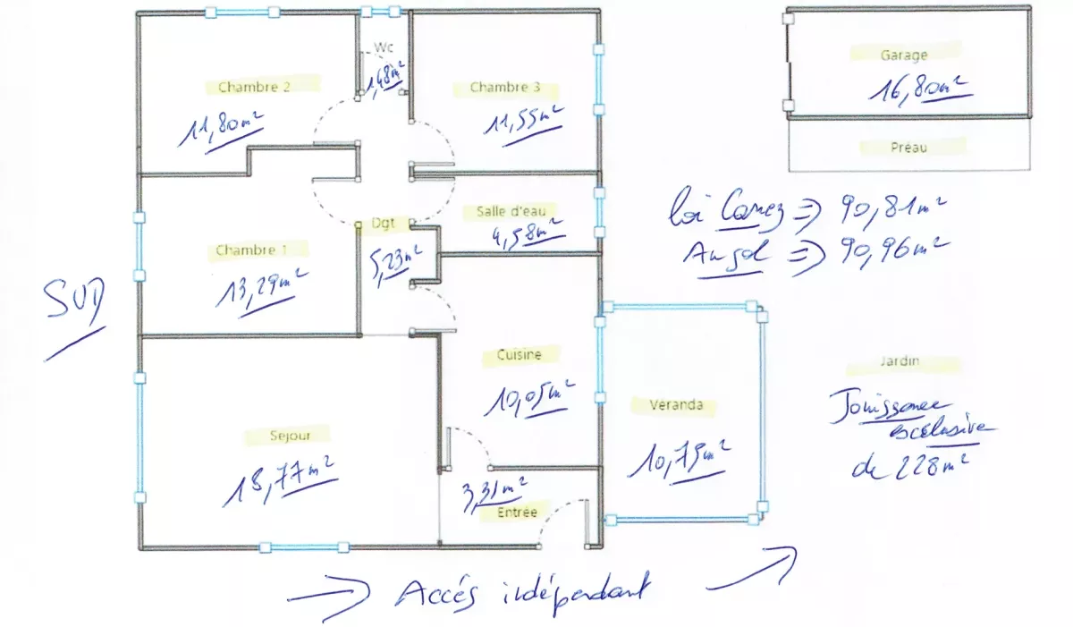 venez découvrir en rez-de-chaussée ce joli type 4 à relooker, d’une surface habitable de 91 m², loi carrez de 90,81 m².