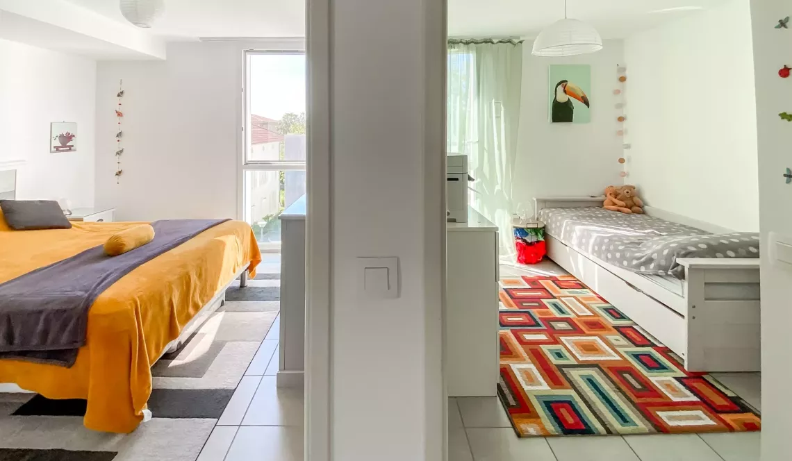 une cuisine américaine équipée, deux chambres, une salle d'eau, un wc indépendant,