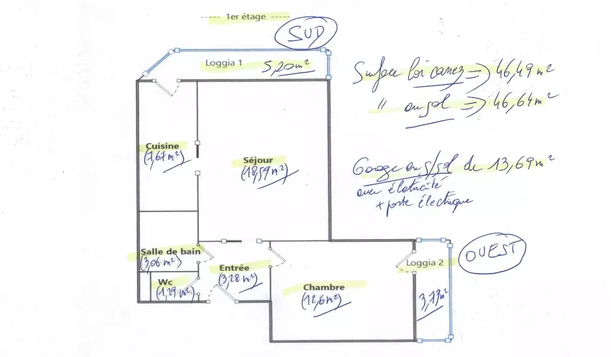 découvrez ce charmant T2 de 47 m² habitables (46,49 m² loi Carrez).