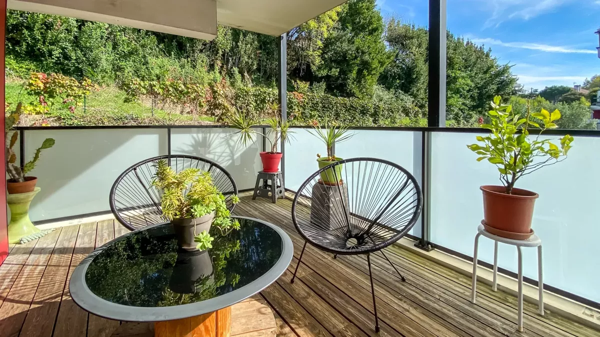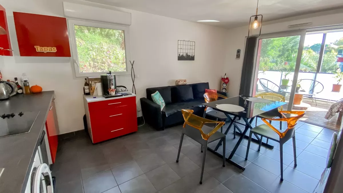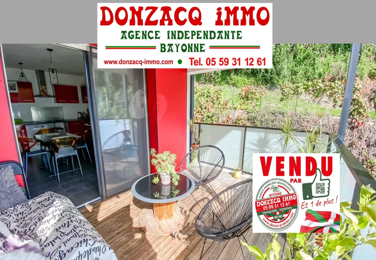 Bayonne les Arènes - Dans résidence de 2011, beau type 2 de 43 m² habitable, belle pièce de vie de 21 m² sur terrasse de 15 m², parking en sous-sol