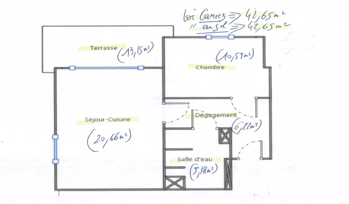 Découvrez ce charmant T2 de 43 m², loi carrez de 42,65 m²,