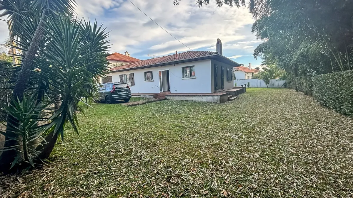 Biarritz au calme - Sur splendide parcelle plate plein sud de 996 m², plain-pied de 85 m² habitable à réhabiliter + garage ou le départ d'un nouveau projet?