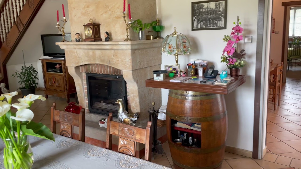pièce de vie de avec cheminée de 45 m², cuisine et arrière cuisine,