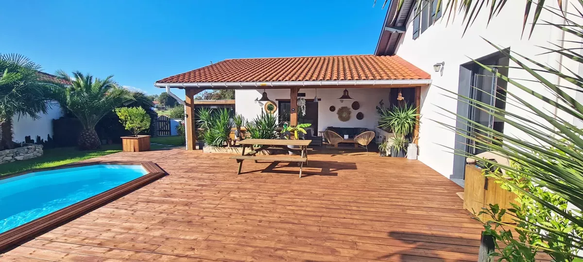 Exclusivité à URT - A 20 minutes de Bayonne, maison "coup de coeur" de 143 m² H au sol, 4 chambres, pièce de vie de 48 m², terrasse + piscine sur 700 m² de terrain