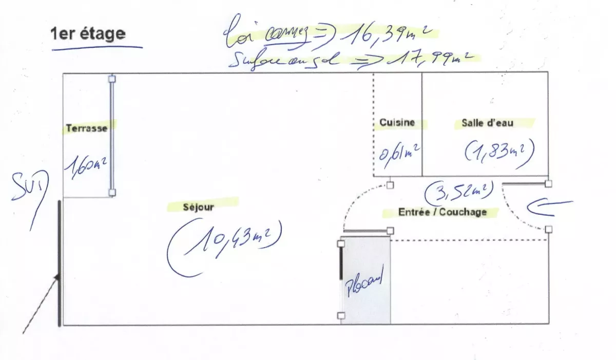 Surface habitable : 18 m² + balcon de 1,60 m² + box fermé de 14 m² env.