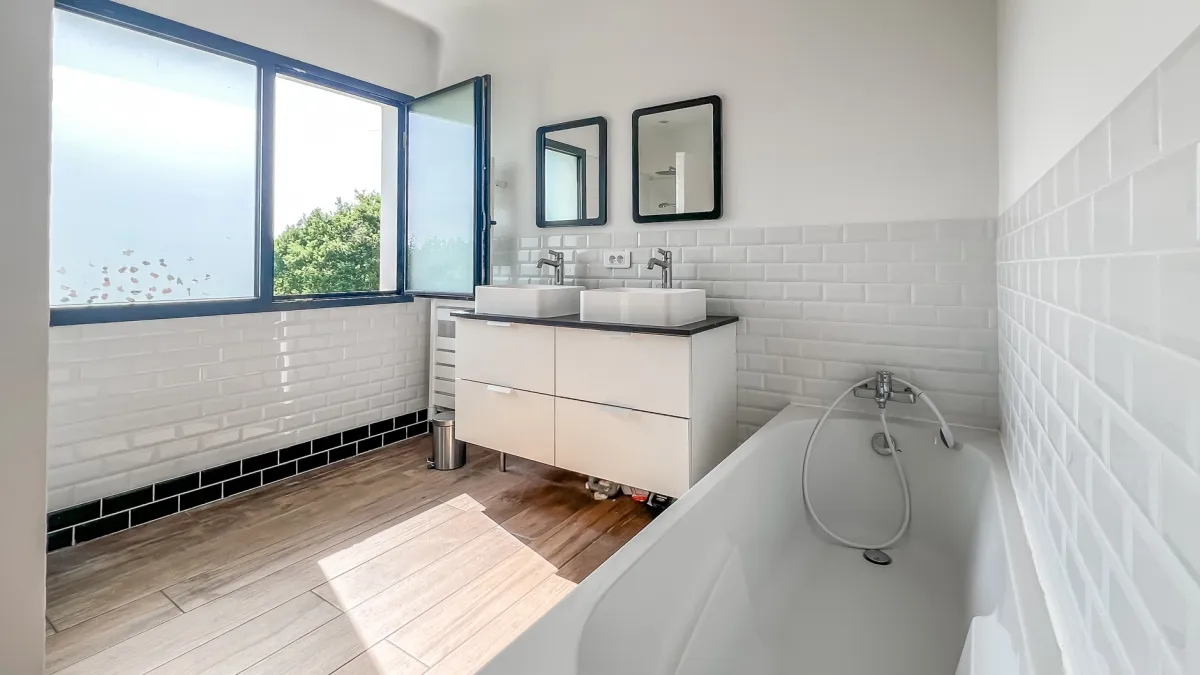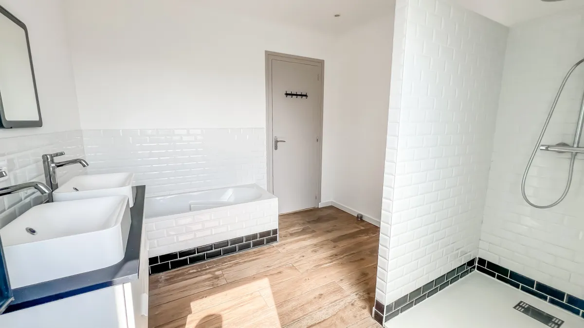 Le confort est assuré par un système de chauffage par pompe à chaleur, complété par une climatisation, garantissant un bien-être tout au long de l’année.
