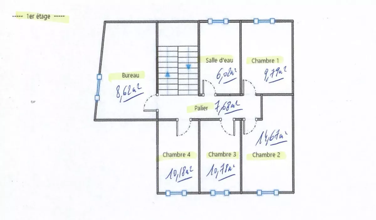 Au 1er étage, 5 chambres, bureau et salle d'eau.