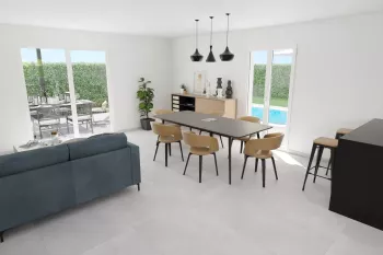 Pièce de vie en L de 46 m² (salon / salle à manger / cuisine)